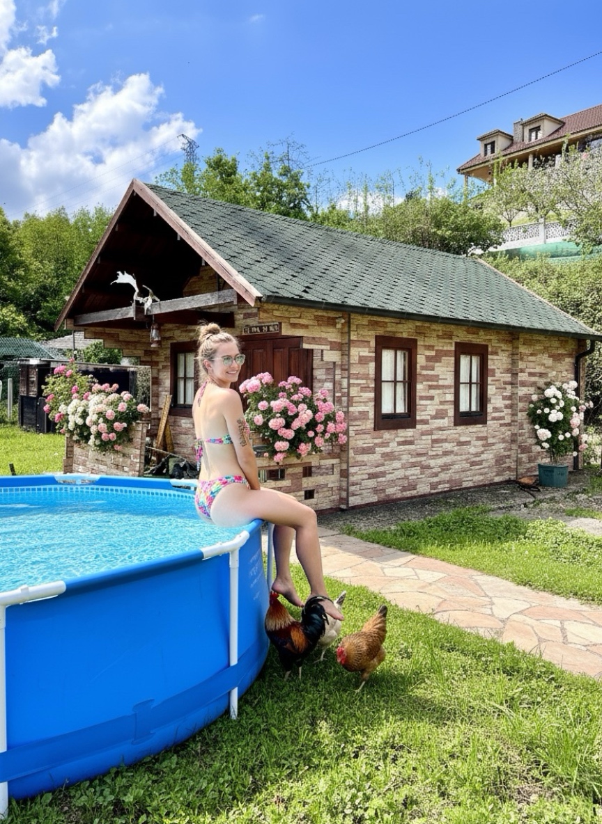 ducha exterior con agua caliente